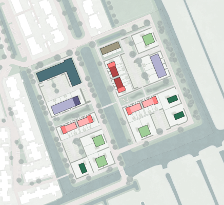 In Cabauw werken De Woningraat, Cabauw “Samen Sterk” en stichting V.O.C.U.S. momenteel samen aan een plan voor nieuwbouw achter ’t Gossie – De Geste en de ijsbaan. Samen vormen deze partijen de stuurgroep ‘Tuurlijk Cabauw’, die zich inzet voor een leefbaar en toekomstbestendig dorp. Het nieuwbouwplan zal bestaan uit een mix van woningen voor starters, ouderen en gezinnen. Totaal komen er 79 nieuwe woningen. Op deze locatie kunnen mogelijk 52 koopwoningen en 27 huurwoningen worden gebouwd. De Woningraat richt zich op de huurwoningen. Het gaat in totaal om 20 sociale huurwoningen en 7 middenhuur woningen. Op de tekening hieronder krijg je een indruk van de plannen. Op de plek waar een L-vormig gebouw staat, komen de huurwoningen